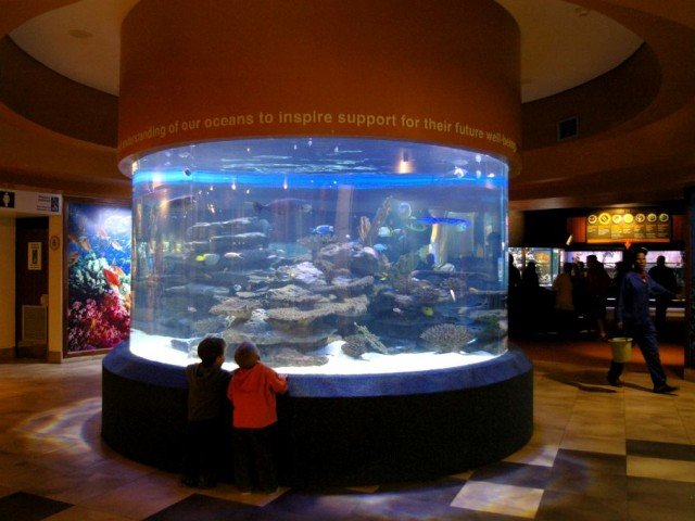Аквариум произвел настоящую революцию среди морских смотровых панелей, потому что они там — цилиндрические, а внутри находится имитация Карибского кораллового рифа.