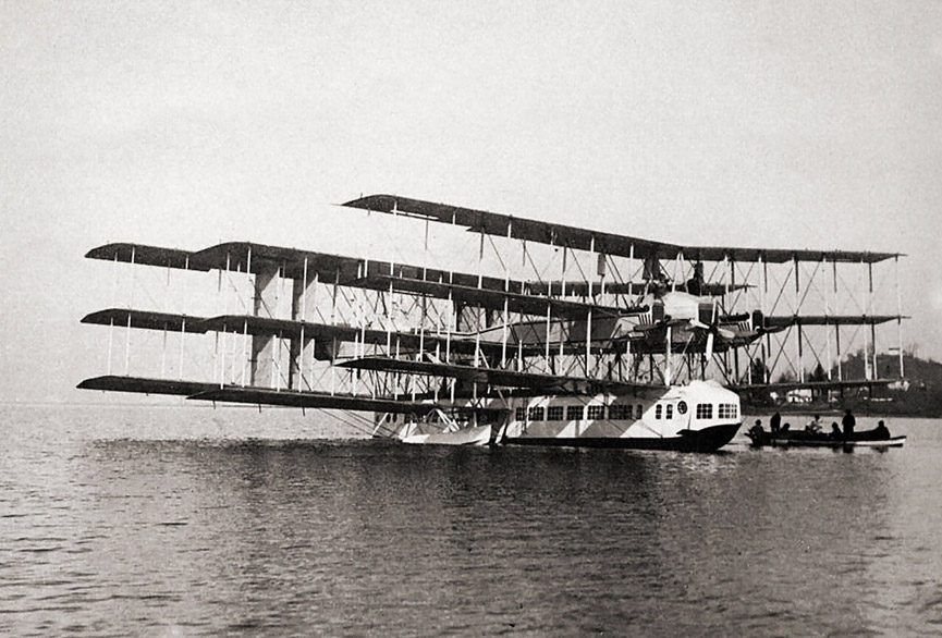 Рассмотрим дом на воде, скрещенный с самолётом. Именно эта идея лежала в основе Caproni Ca.60 Noviplano. Эта машина установила «планку странности» для самолётов настолько высоко, что даже «Красный Фоккер» Рихтгофена по сравнению с ней выглядит очень бледно. Длина этого летательного аппарата составляла 23 м. Вес — колоссальные 26 т. Этот плавающий и летающий аппарат был построен, чтобы стать первым трансатлантическим лайнером в истории авиации.