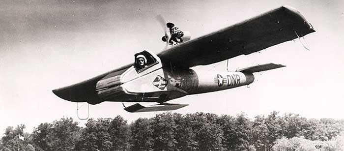 Vought V-173 был разработан в 1942-м году, в качестве прототипа самолёта с вертикальным взлётом и посадкой, способного перехватывать вражеские истребители, взлетая с палубы авианосца. За странную конструкцию лётчики-испытатели прозвали этот самолёт «летающий блин».