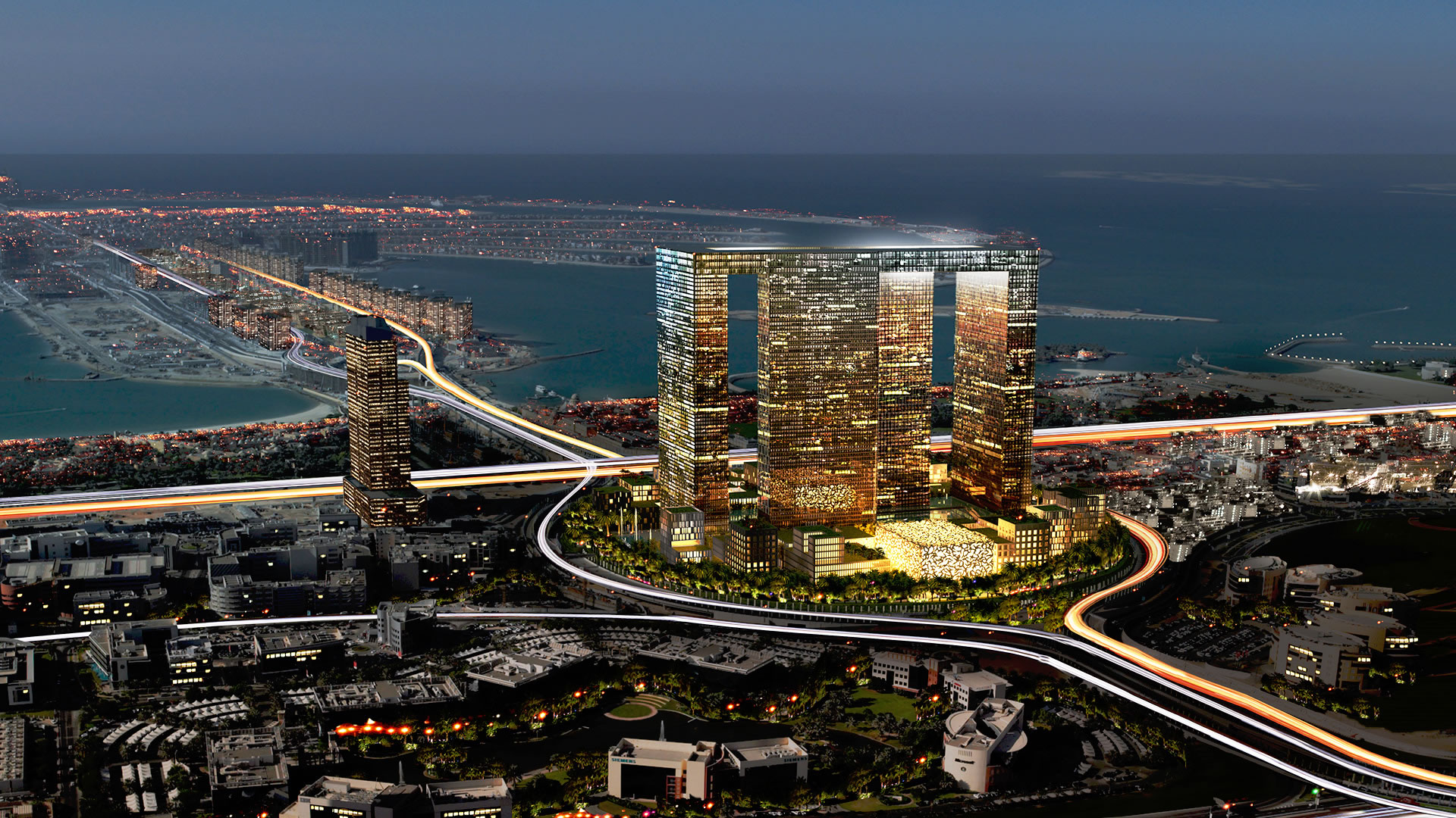 Между проектированием искусственных островов в форме частей света, крупнейшего торгового центра, известного человеку, и, конечно, самого высокого здания в мире, кто-то решил, что в Дубае должно быть роскошное здание, похожее на обычный жилой дом, зловеще расставивший ноги. Строительство 73-этажного Дубай Перл с видом на Персидский залив стартовало в 2009-м году и должно быть завершено в 2016-м. В планируемом «внутреннем городе» будут четыре башни, соединённые небесным мостом, и премиум-театр на 1800 мест, в котором будет проводиться Дубайский международный кинофестиваль.
