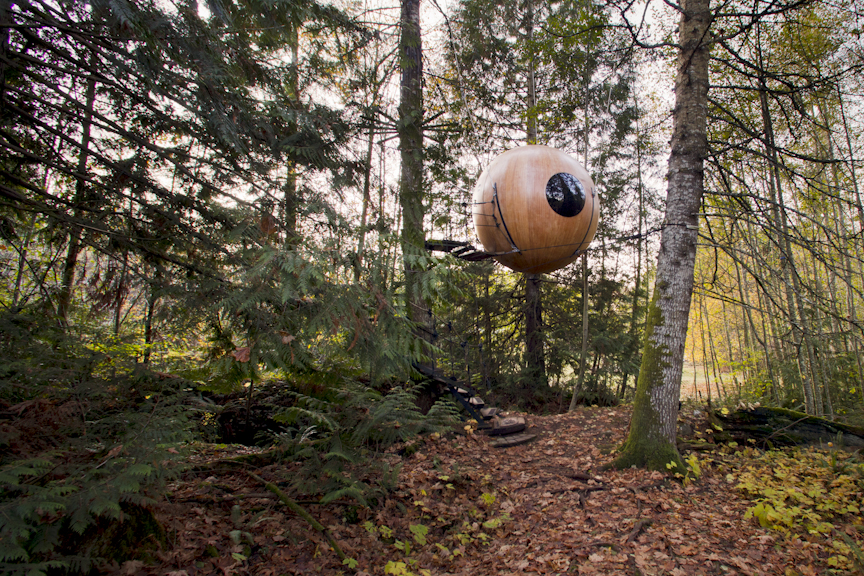 Созданные архитектором Томом Чудли фантастические сферы — взрослая версия детской мечты о доме на дереве. Эти дома на деревьях со всем необходимым выглядят совсем новыми, но Чудли строит их вот уже на протяжении 20-ти лет. Он владелец и основатель компании «Vancouver Island’s Free Spirit Spheres», и, согласно интервью в «Huffington Post», его вдохновила «магия леса, которую вы не найдёте больше нигде». Четыре сферы доступны для аренды весь год, поэтому имейте их в виду, если вам захочется отдохнуть в нетрадиционном отеле.