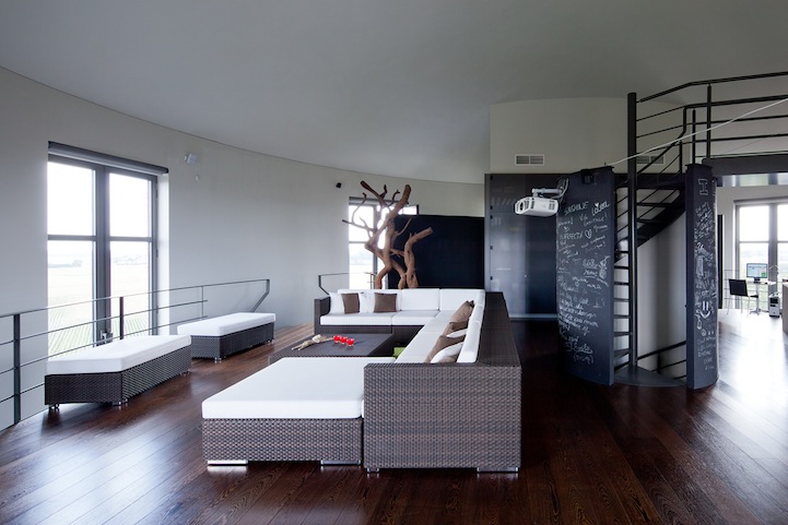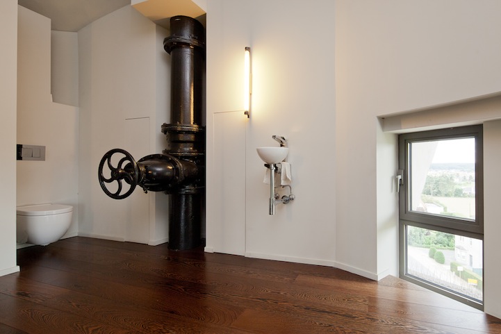 Этот дом, расположенный в Стеноккерзел, Бельгия, немного к северо-востоку от Брюсселя, построен примерно в 1941-м году. Сначала он был настоящей водонапорной башней, и так оставалось до 1990-го года, когда его архитектор, Маурио Бригхам из «Bham Design Studio», решил его перестроить. Он создал в башне современное жизненное пространство, со всем, что было бы в любом другом доме.