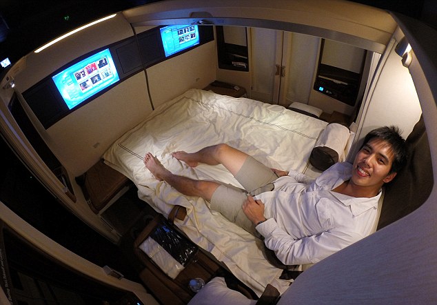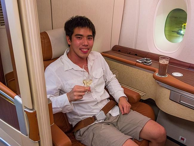 После входа в аэропорт Сингапура он прошёл в зал регистрации для пассажиров первого класса, летящих в частных апартаментах. Этот зал он описал как «вестибюль большой гостиницы, в котором даже был коридорный, который нёс ваш багаж». Его отвели в специальное помещение, называемое «отдельной комнатой», каковая, по уверениям персонала, «была намного лучше, чем просто первый класс».