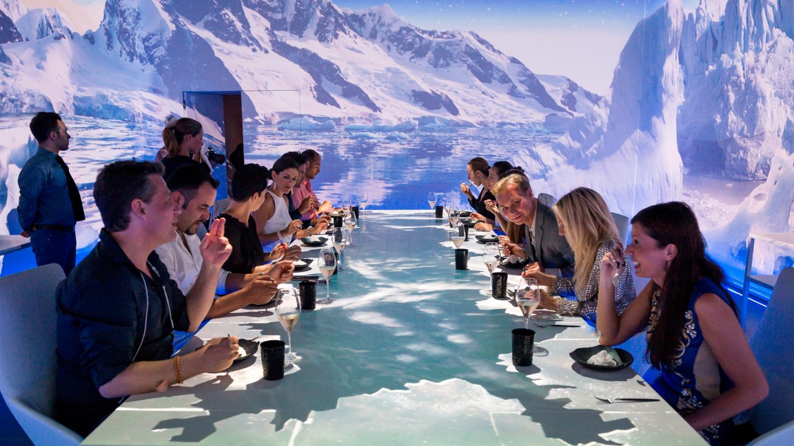 Еда из 20 блюд — это ещё не всё. Температура в комнате, влажность, и даже запахи меняются для того, чтобы соответствовать каждому подаваемому блюду. Изменяется и музыкальное сопровождение.