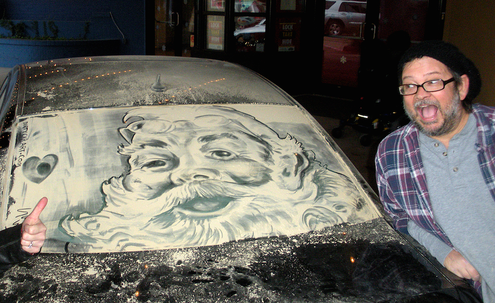 52-летний графический дизайнер по имени Скотт Уэйд стал очень известен из-за своих удивительных рисунков, которые он создавал, используя грязь на стёклах машин.
