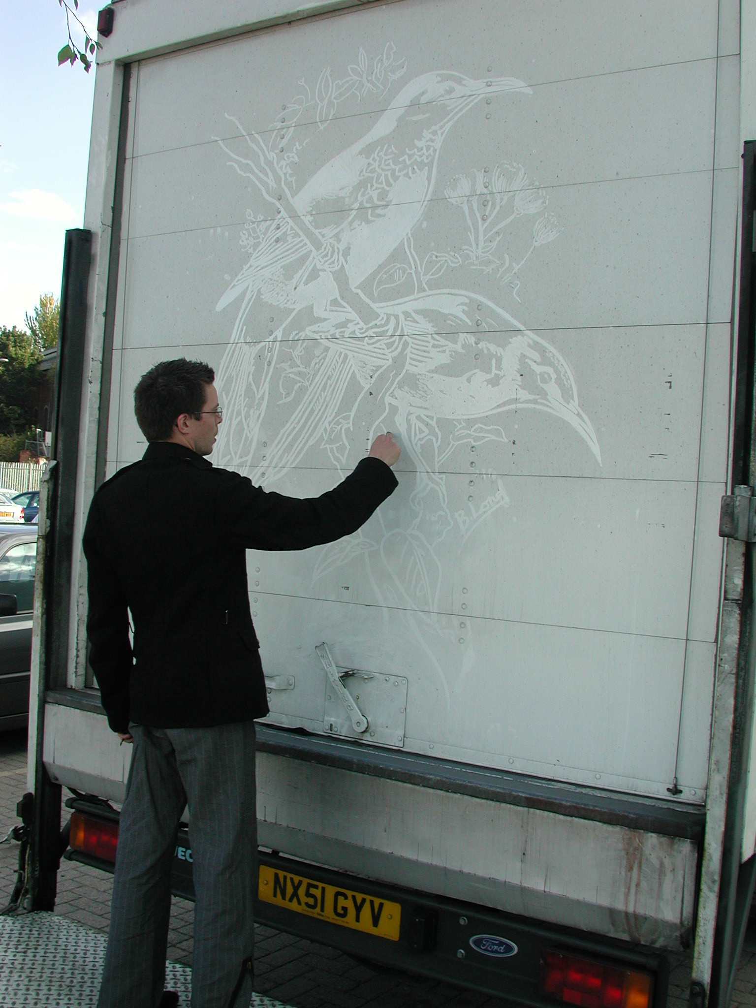 Другой заметный художник — Бен Лонг из Великобритании, он практикует несколько упрощённую версию «обратного граффити», используя собственный палец для удаления грязи со стен, скопившейся там из-за выхлопов машин. Его рисунки держатся на удивление долго, до шести месяцев, при условии, что их не смоет дождь или не уничтожат вандалы.