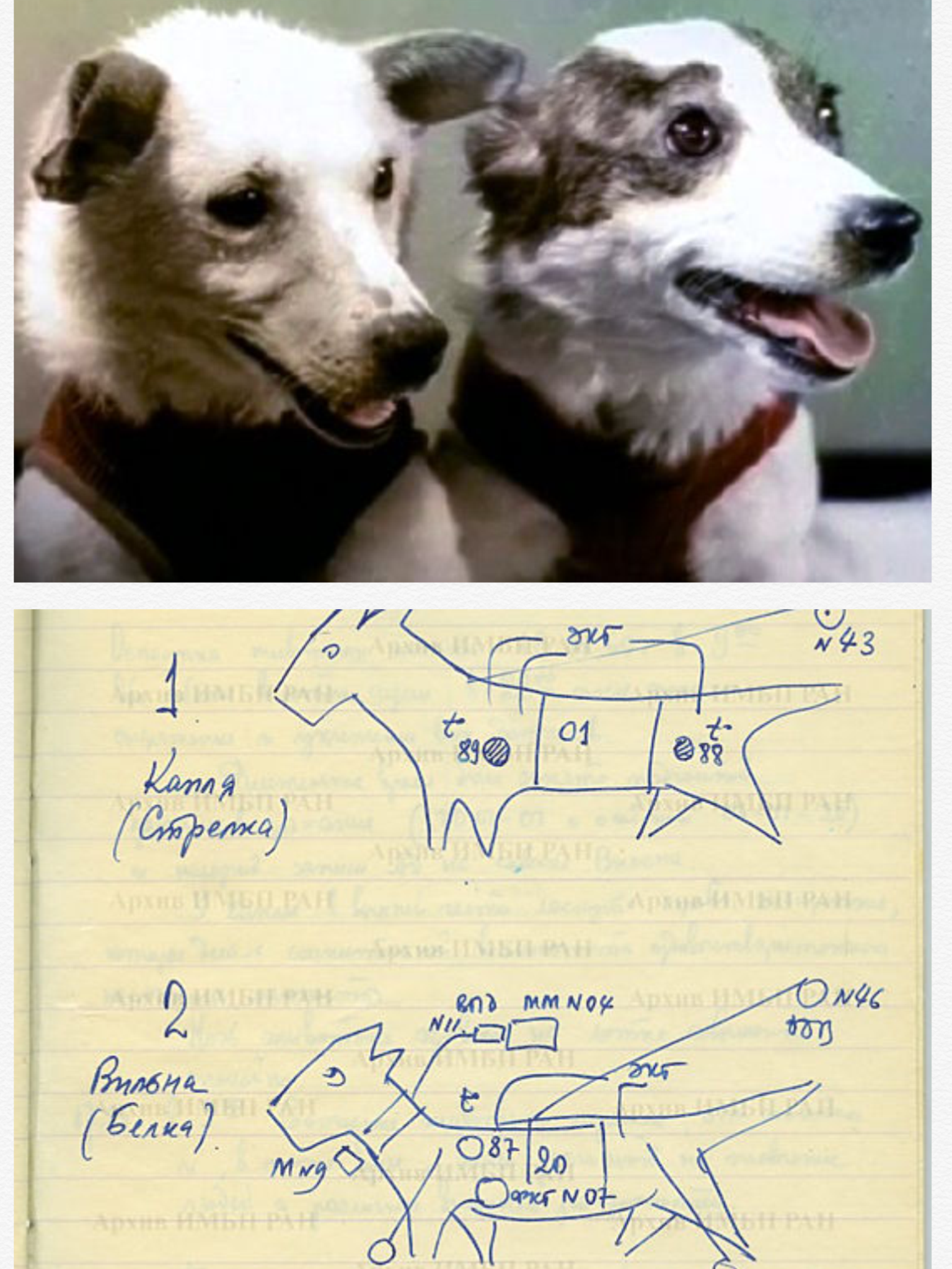 Космические собаки Белка и Стрелка получили эти имена только за шесть дней до полёта. До этого Белка была Вильной, а Стрелка — Каплей, а ещё раньше то ли Сильвой, то ли Марсианкой. Эти данные обнаружены в архивной тетради Олега Газенко, руководившего физиологической подготовкой этих и многих других собак советской космической программы.