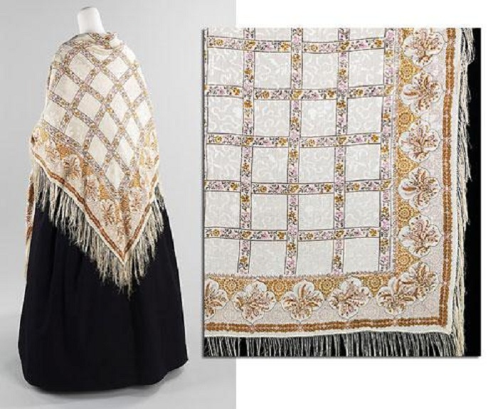 5. Примерно с середины 19 века в Российской империи начинается массовый выпуск шалей с набивным рисунком, что очень удешевляет этот предмет одежды. Женщины из низших сословий также могут позволить приобрести себе шаль.
