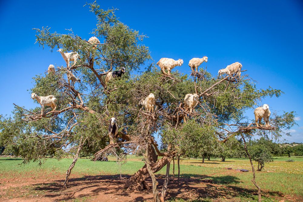 1. «Вспорхнула коза на ветку…» Такие пастбищах на деревьях — самая обычная картина в марокканских селениях берберов. Козы целыми стадами взбираются на арганию и лакомятся ее плодами, ловко балансируя на самой макушке кроны. Подобное зрелище всегда изумляет туристов.