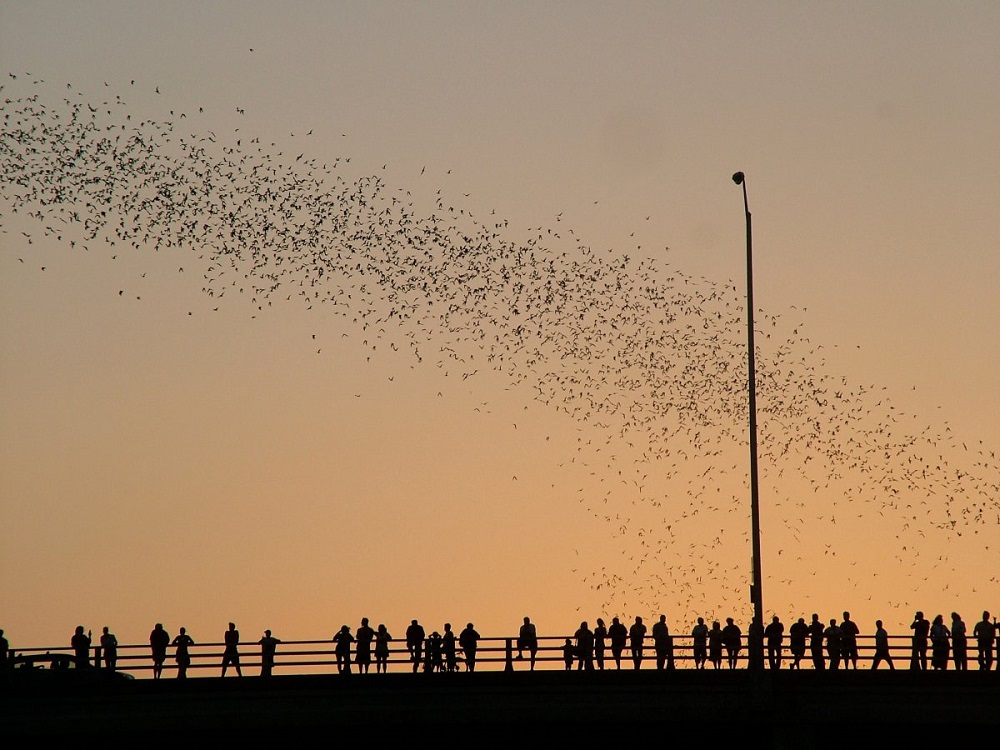 10. Огромное облако летучих мышей поднимается летними ночами над центром Остина, столицы штата Техас, и поглазеть на это представление ежегодно съезжаются десятки тысяч туристов. Около 1,5 миллиона рукокрылых живут под мостом Энн Ричардс на Конгресс-авеню — это крупнейшая в мире городская колония летучих мышей! Днем они спят, а ночью разом вылетают поохотиться на насекомых, значительно облегчая борьбу с вредителями сельского хозяйства. А зимуют они в Мексике.