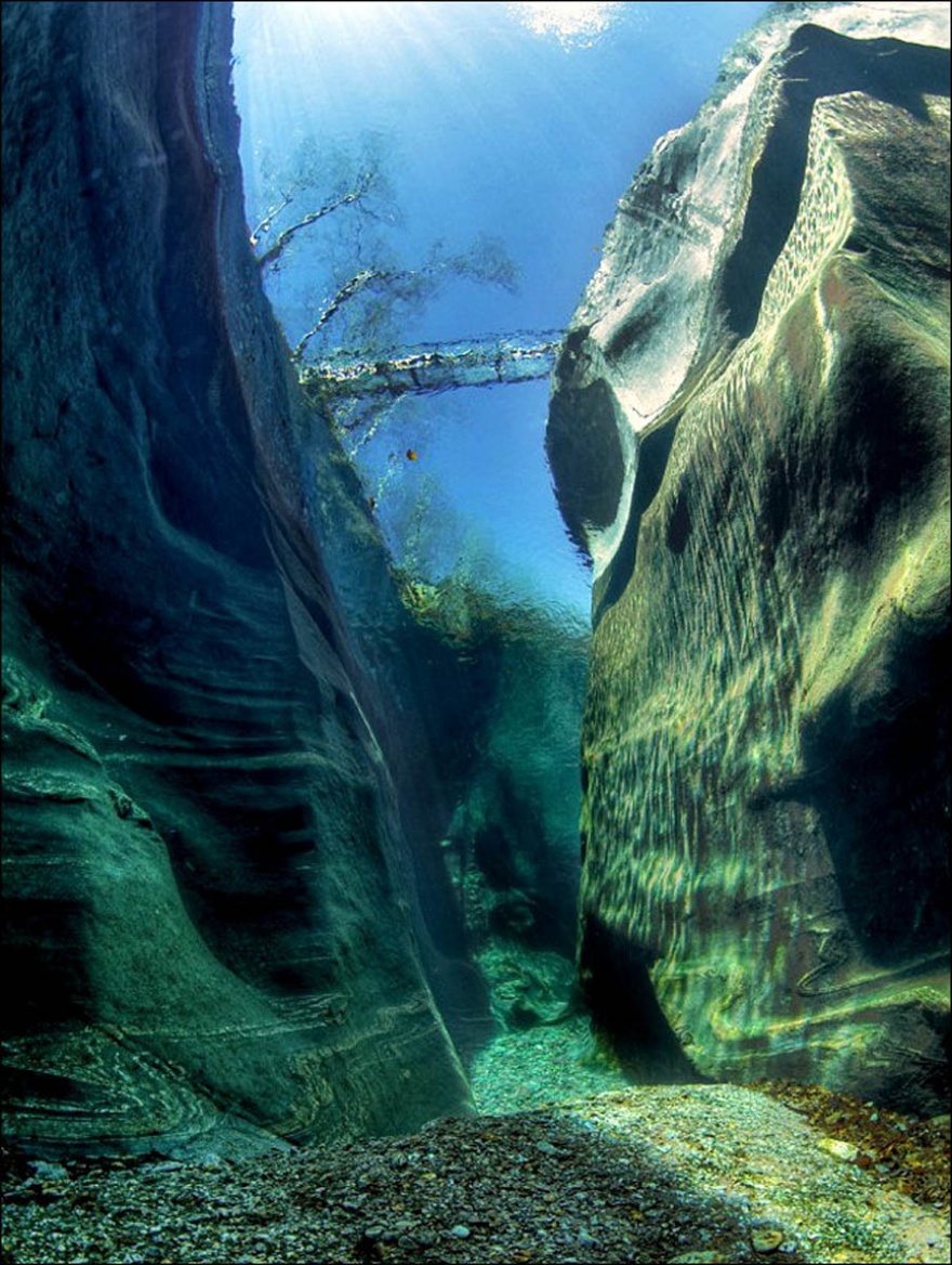 Горная река Верзаска, Швейцария. Вода настолько чистая, что можно разглядеть дно