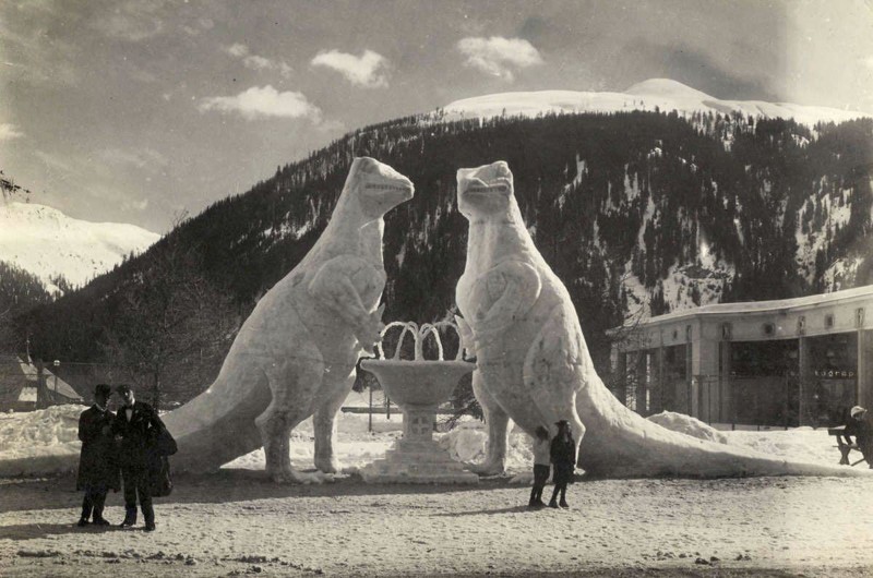 Одни из победителей конкурса снежных скульптур в Давосе, 1914 год, Швейцария