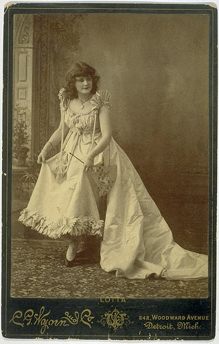 Лиллиан Расселл была одной из первых популярных актрис. Она много пела и танцевала в варьете, а её стиль одежды, мимику и жесты копировали практически все женщины того времени