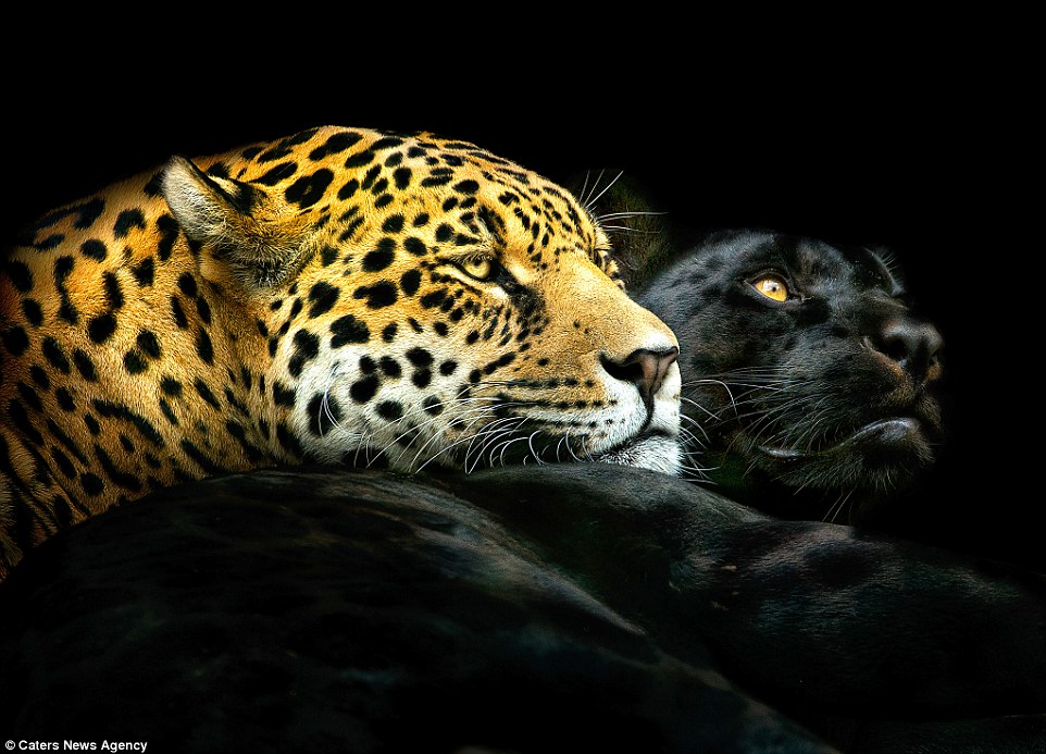 Фотография леопарда и чёрной пантеры была получена путём совмещения двух снимков