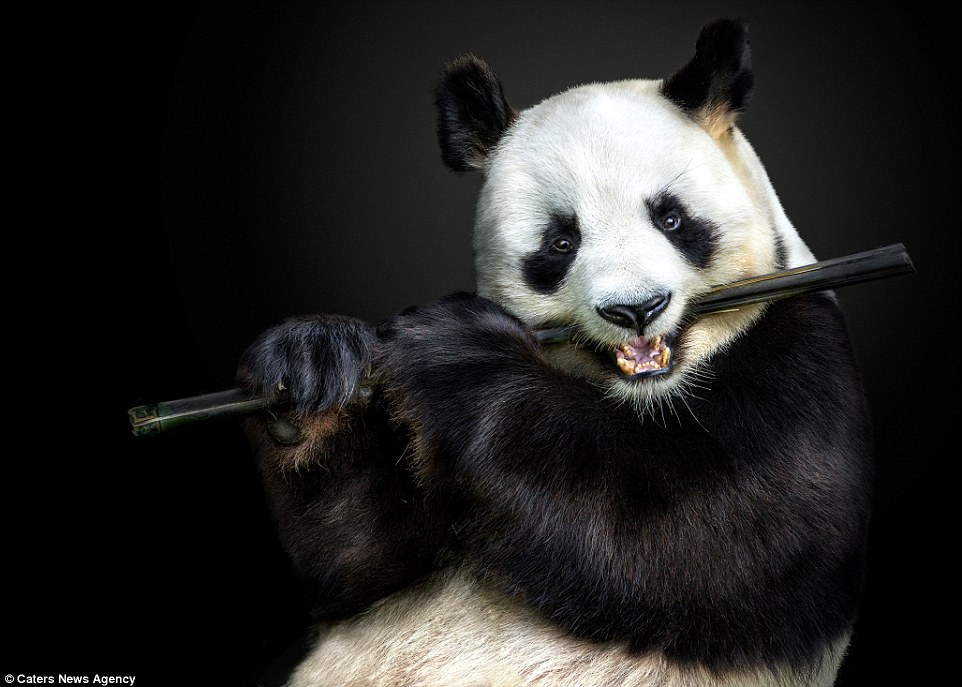Кажется, что эта панда играет на дудке, но на самом деле она есть бамбук
