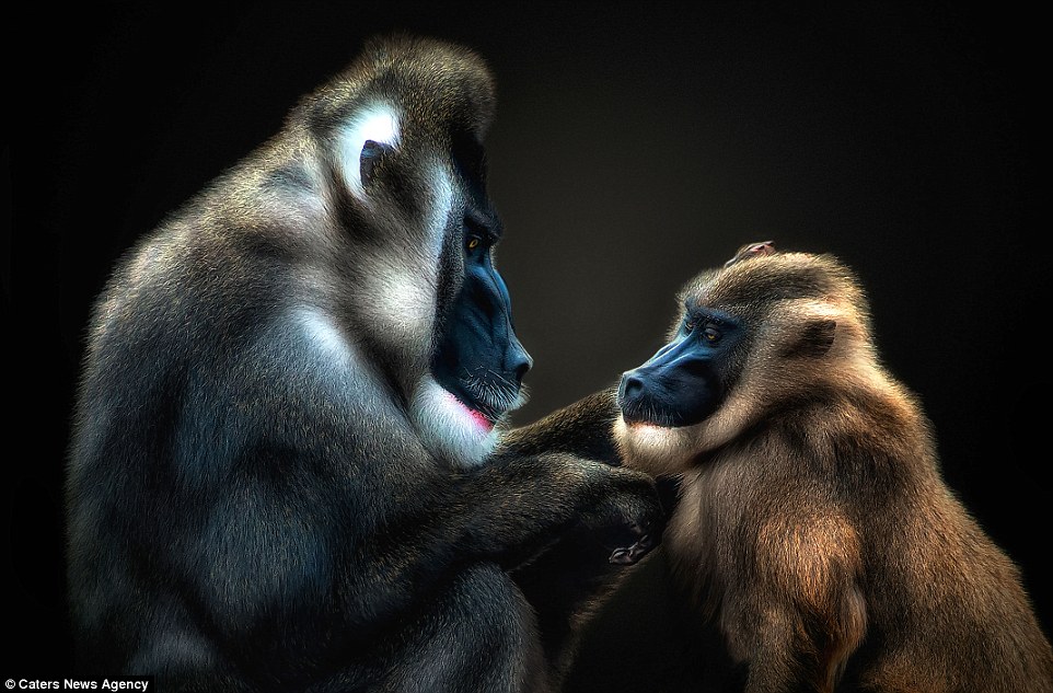 Милое фото двух мандриллов, которые заботятся друг о друге