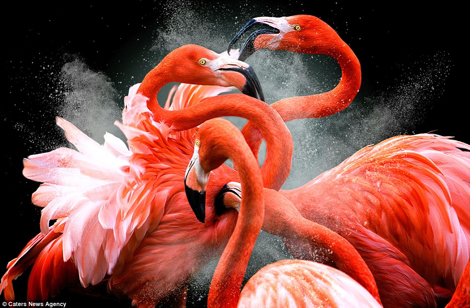 Педро Кребс снял драматичную сцену: четыре фламинго дерутся друг с другом