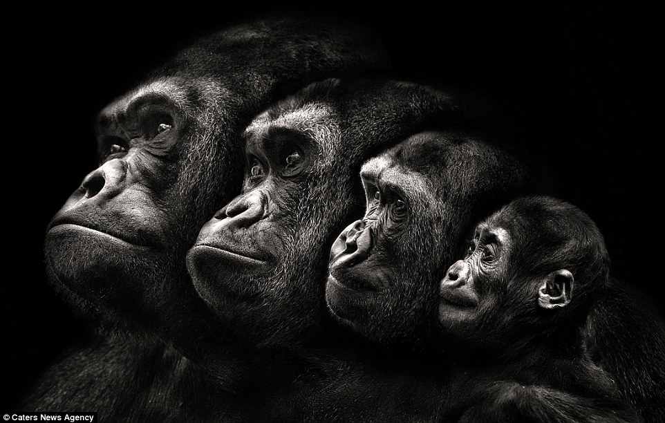 Этот семейный портрет обезьян был сделан из нескольких разных снимков