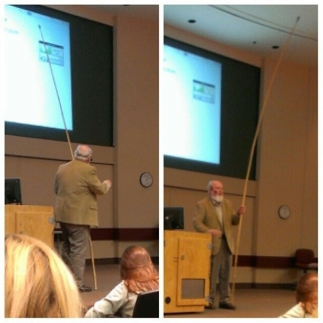 Этому профессору не нужны эти ваши лазерные указки. Он верен старым традициям!