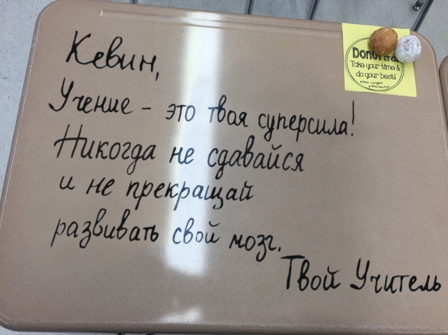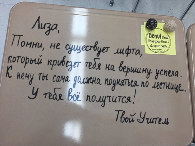 Учитель каждый день пишет на партах мотивирующие послания для своих учеников