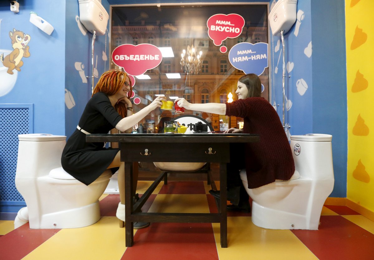 32. Странное кафе в центре Москвы предлагает посетителям расположиться на гигантских унитазах