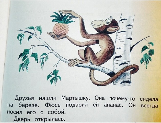 Каким образом эта мартышка оказалась на берёзе? И кто такой Фюсь?