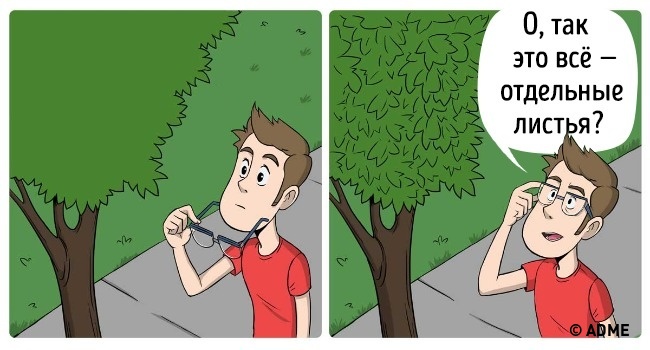 Фактрум делится с читателем подборкой очень забавных иллюстраций о том, каким неожиданным может оказаться мир, когда вы впервые надели очки.