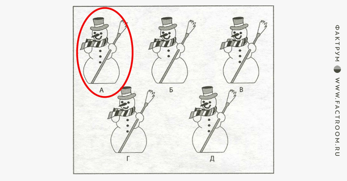 Фактрум приготовил для вас задачку, в которой необходимо найти снеговика, который является лишним на представленной картинке. Осторожно, головоломка с подвохом!