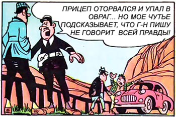 Если бы всё было именно так, как утверждал господин Пишу, то его фургон скатился бы в овраг другой стороной. В таком случае крюк для сцепки был бы направлен в другую сторону. Детектив решил, что Пишу сам отцепил фургончик, развернул и столкнул его, чтобы получить компенсацию от страховой компании.