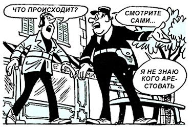 Прогуливаясь по парку, детектив услышал какие-то крики. Он пошёл на шум и увидел растерянного полицейского, который не знал, кого из троих мужчин ему следует задержать.
