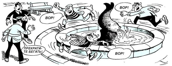 Три подозреваемых в совершении кражи бегали вокруг фонтана, обвиняя друг друга. Они не послушались ни приказа полицейского, ни детектива и продолжали нарезать круги. Детектив решил выждать, пока мужчины устанут, а уже потом разобраться в произошедшем.