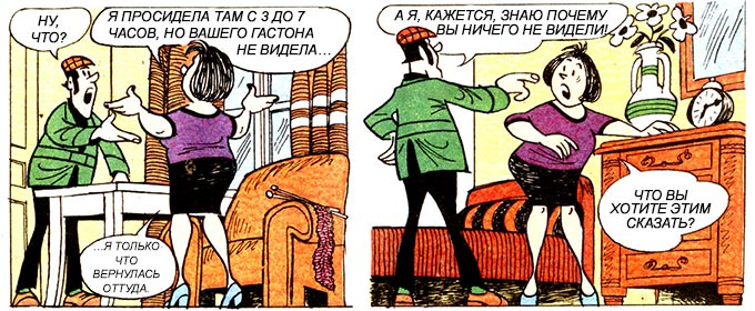 Он проводил мадам Роуз до магазина, а сам отправился на работу. Вечером он позвонил в свой офис и узнал, что Гастон всё-таки совершил кражу в указанном магазине. Озадаченный детектив направился к мадам Роуз, чтобы узнать о результатах её слежки.