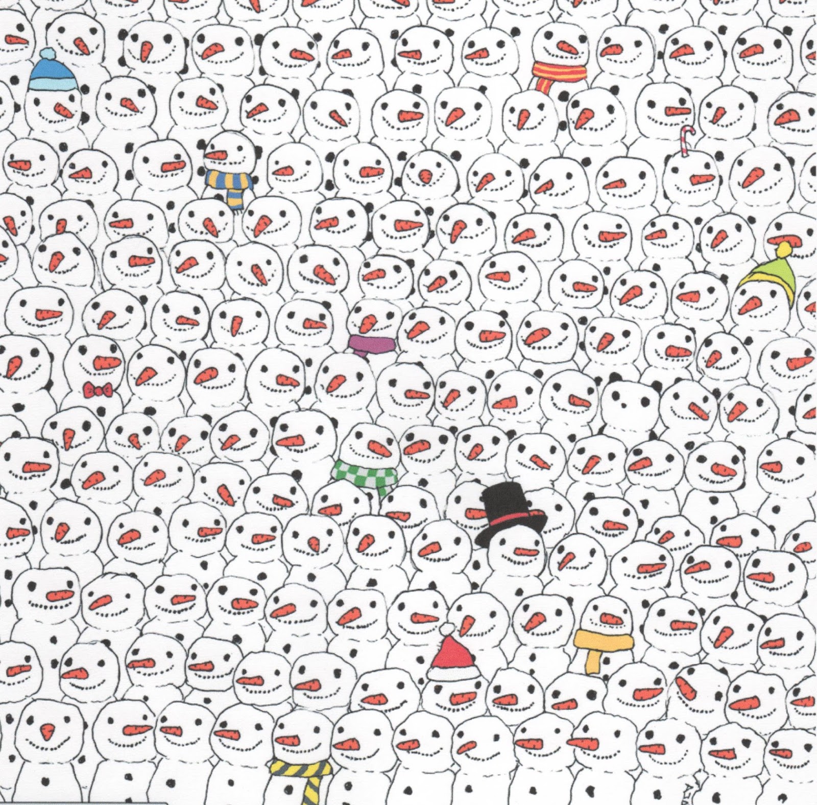 Панда пытается скрыться от наших взглядов среди снеговиков, но вряд ли ей это удастся! Попробуйте засечь время и отыскать хитрюгу быстрее, чем за полминуты, пока она не сбежала и с картинки!