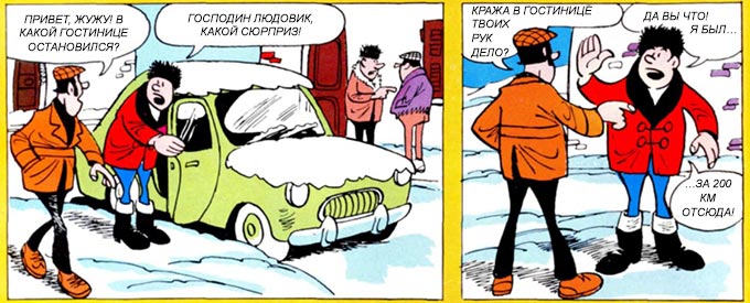 Во время новогодних праздников детектив уехал за город и остановился в отеле «Белая цапля». И вот однажды хозяин отеля сообщил ему, что в одном из номеров примерно в семь часов утра была совершена кража. К сожалению, никаких следов преступника не осталось, так как утром был снегопад, который и скрыл все следы.
