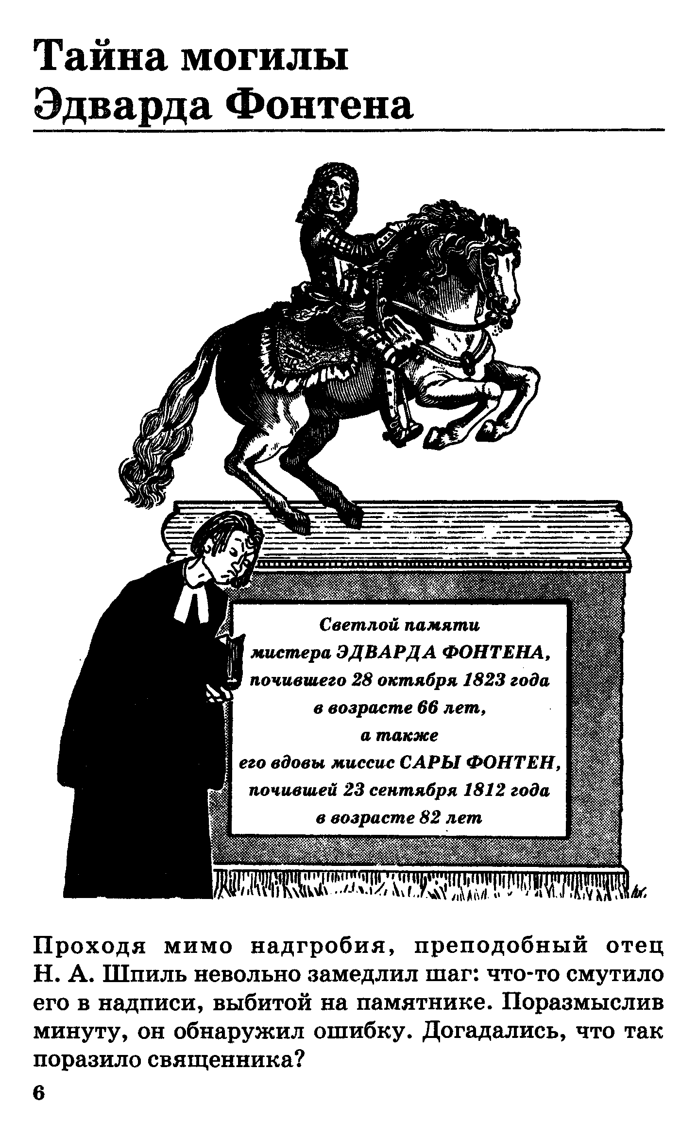 Проходя мимо надгробия, преподобный отец Н. А. Шпиль невольно замедлил шаг: что-то смутило его в надписи, выбитой на табличке. Поразмыслив минуту, он обнаружил ошибку. А вы сможете догадаться за меньшее время, что же здесь не так?