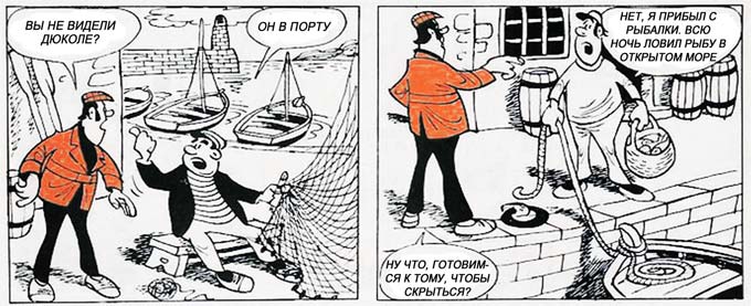 Детектив отправился на поиски Дюколе и, расспросив местного рыбака узнал, что тот взял лодку и вышел в море. Прождав преступника несколько часов, сыщик всё-таки встретил его и начал расспрашивать о том, где он был прошлым вечером.