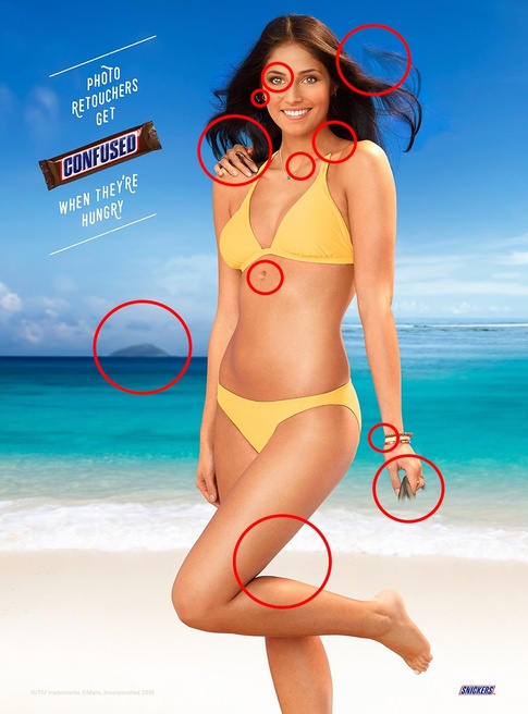 Надпись на фото: «Ретушёры бывают рассеяны, когда голодны»