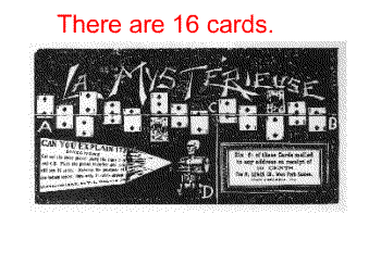 В начале на картинке представлено шестнадцать карт. Но при разрезании этой картинки на три части остаётся всего пятнадцать карт.
