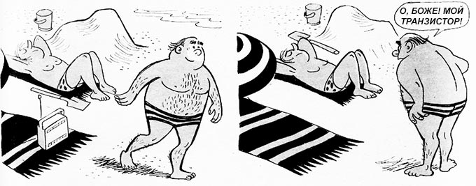 Первым делом детектив спросил молодого человека, который загорал рядом с господином Флюе. Но тот уверил сыщика, что спал и ничего не видел. Сказав это, юноша отправился в отель на обед. Однако его слова не убедили детектива, и он обвинил его в краже приёмника. На основании чего детектив понял, что именно этот юноша похитил транзистор господина Флюе?