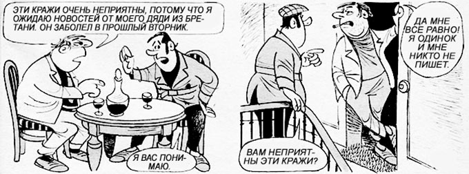 Детектив заглянул в соседнюю квартиру. Живущий в ней месье Ормонт был сильно возмущён пропажей своих писем, поскольку являлся заядлым филателистом.