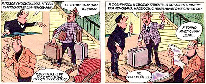 Ближе к ночи детектив поднялся к себе в номер, но на пороге его перехватил администратор и попросил о помощи. Оказалось, что у месье Дюпона пропали чемоданы.