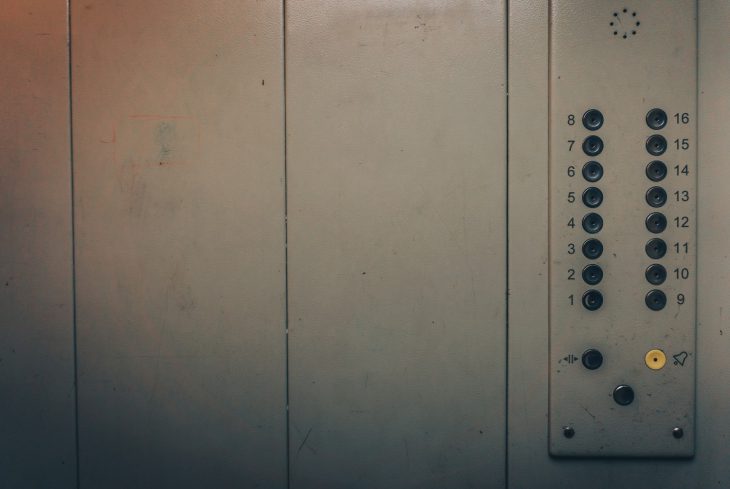 Утро понедельника, папа впопыхах собирается на работу, перед выходом хватает мусор и пулей вылетает на лестничную площадку. Вызывает лифт, а пакет ставит возле стены, чтобы успеть застегнуть пальто. Наконец открываются двери кабины. Лифт оказывается битком набит соседями, среди которых молодой сотрудник полиции. Папа, понимая, что вряд ли втиснется, выдаёт: