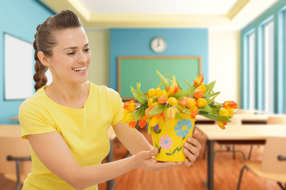- Предмет интерьера. Поскольку у каждого учителя есть свой кабинет, то настольная лампа, ваза, часы, картина будут весьма уместны.