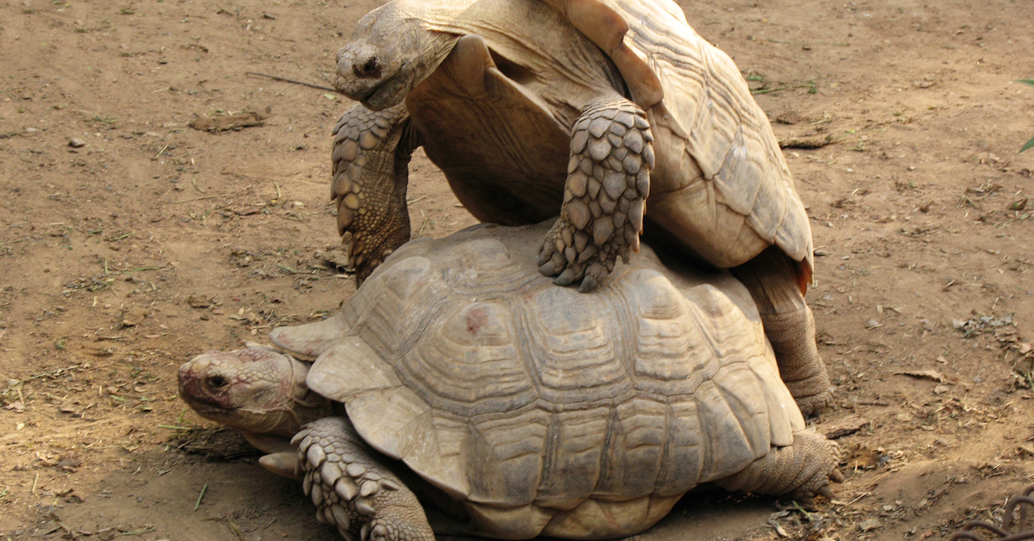 Были с дочкой в зоопарке. В одном из вольеров увидели, как самец черепахи залез на самку и ведёт себя понятным образом.
