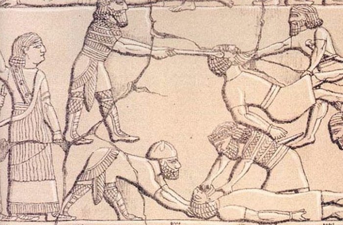 Иногда ассирийская армия не останавливалась на убийстве своих врагов. Когда ассирийский царь Синаххериб вторгся в Вавилон, он стер его с лица земли. Все, что осталось позади него, это было хвастливое заявление: «город и его дома, от основания до крыш я разграбил, уничтожил и сжег огнем… посреди города я вырыл каналы и затопил его водой. На месте Вавилона осталось только болото».