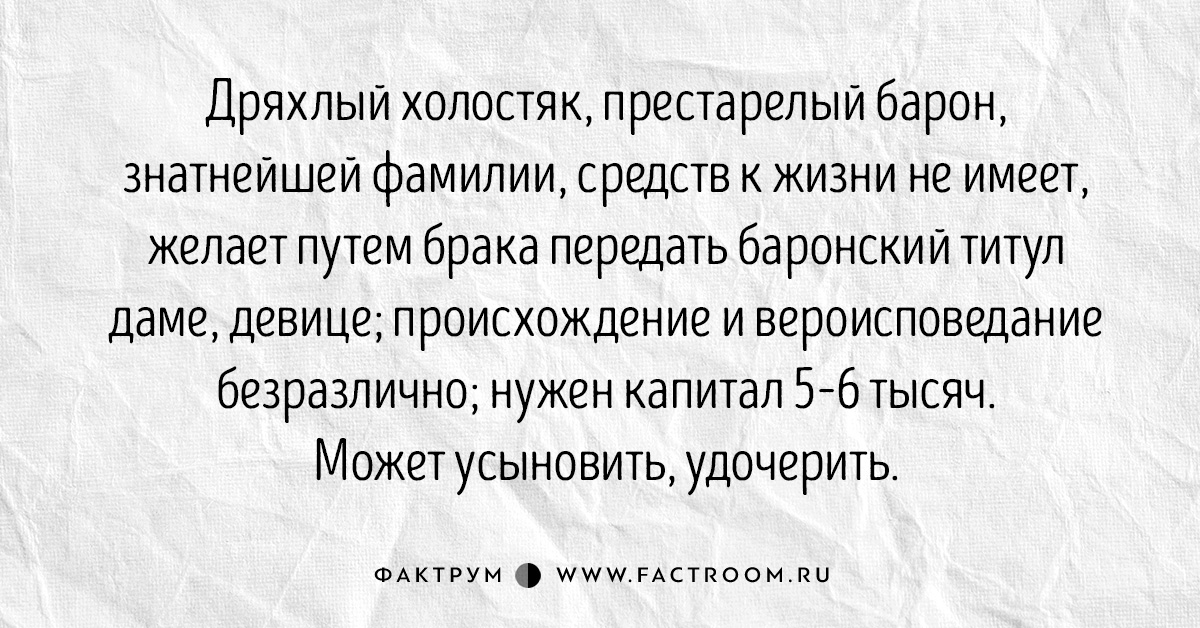 Фактрум публикует забавный и увлекательный материал о брачных объявлениях относительно недалёкого прошлого.
