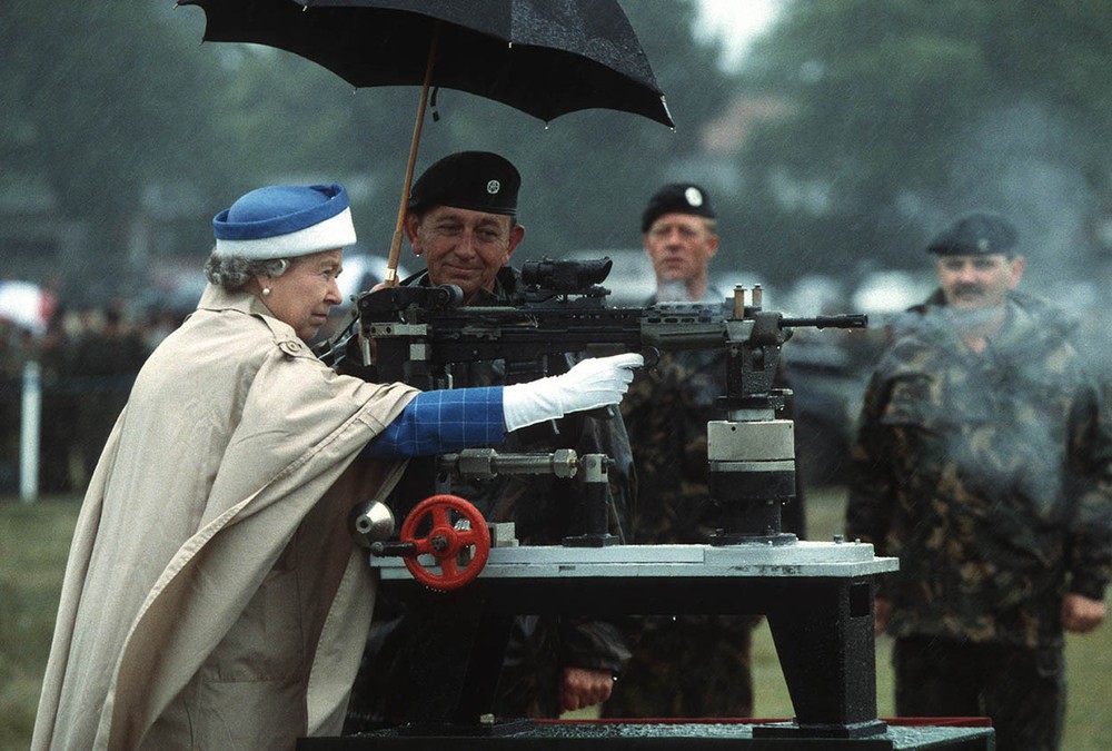Это фото было сделано во время визита королевы на стрельбище в Суррее. Когда королеве показали эту винтовку L85, она не удержалась и сделала несколько выстрелов.