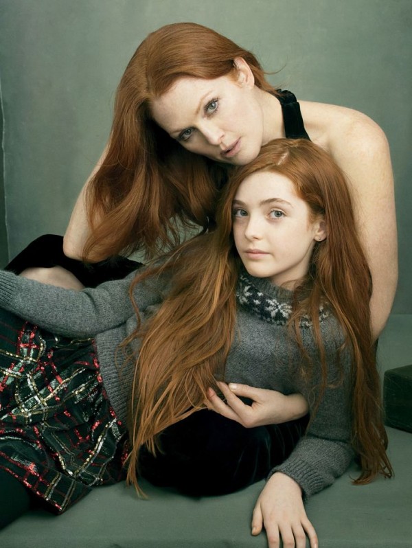 Все ахнули, когда в 2013 году пламенногривая красавица-актриса привела на модный показ свою 11-летнюю мини-копию. А в 2014-м мама и дочка появились на страницах журнала Vogue в рамках проекта «Лучшие представители клана рыжих»