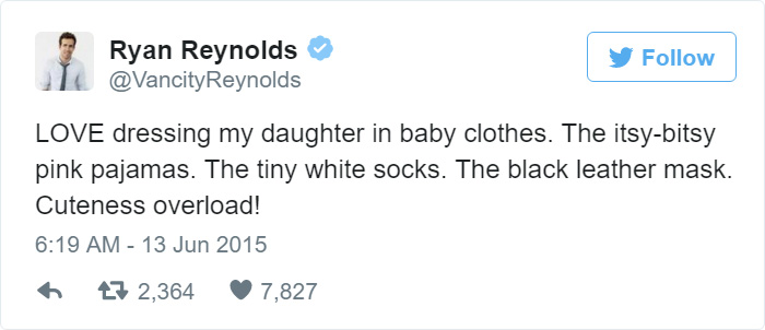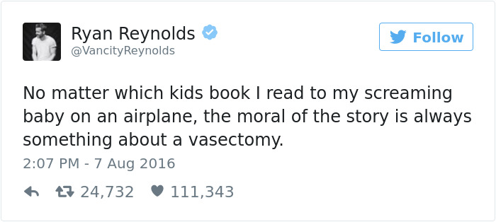 Фактрум хочет познакомить читателя с самыми смешными твитами Рейнольдса, в которых он делится советами по воспитанию детей и просто рассказывает о своём ребёнке!