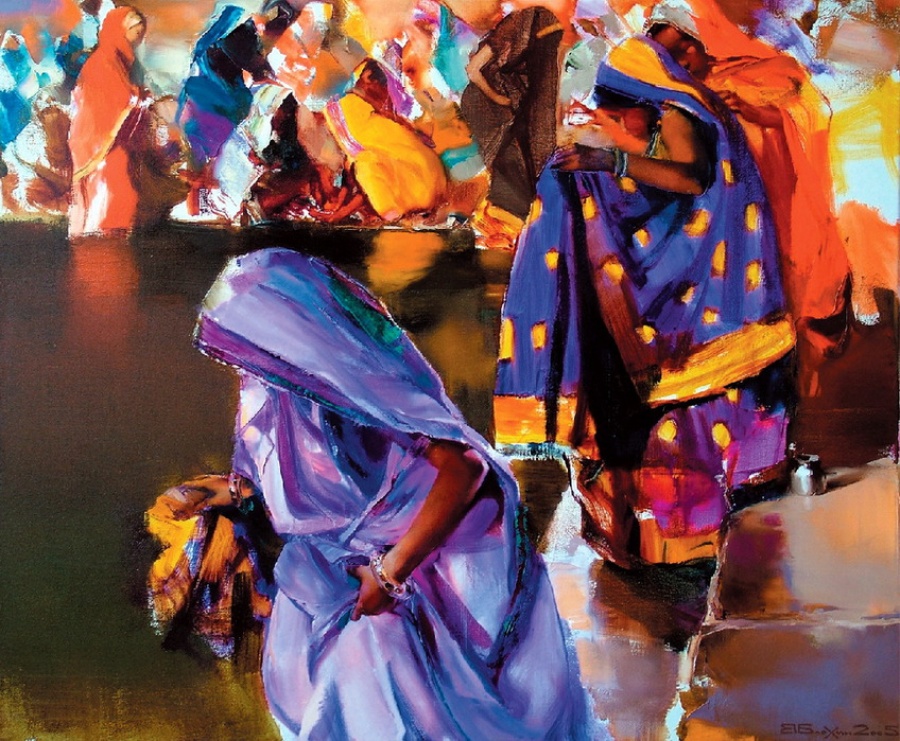 На Востоке все иначе: другие краски, другой воздух, другие жизненные ценности и реальность сказочнее вымысла — так считает современный художник Валерий Блохин. В живописи Валерий больше всего любит цвет. Его работа — это всегда эксперимент: он идет не от фигуры, как большинство художников, а от цветового пятна. У Блохина своя особая техника: сначала он наносит на полотно абстрактные пятна, а затем дорисовывает реальность.